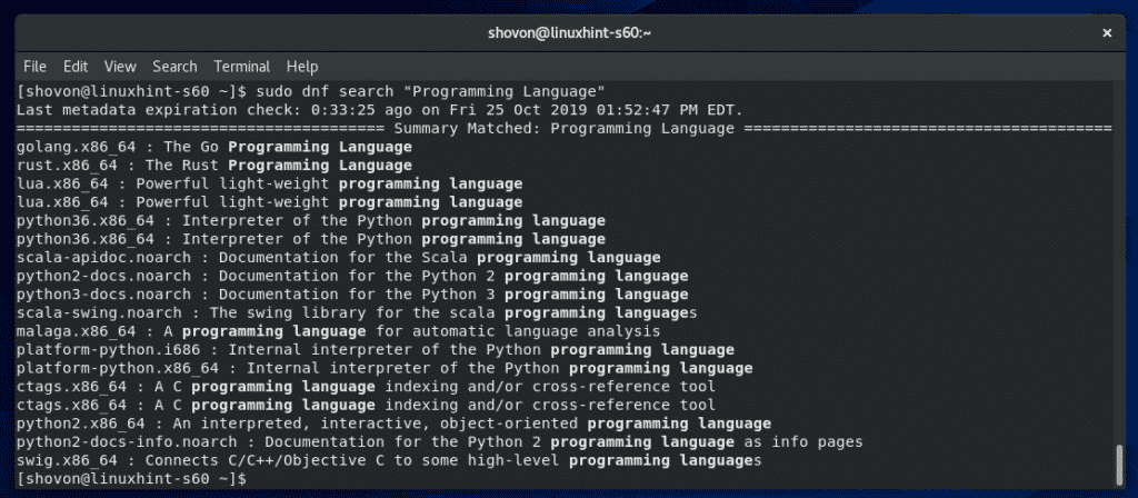 The search result should display all the matched packages. You can choose what to install from here.
