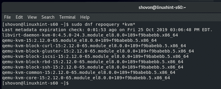 As you can see, all the packages that has kvm in the package name is listed.