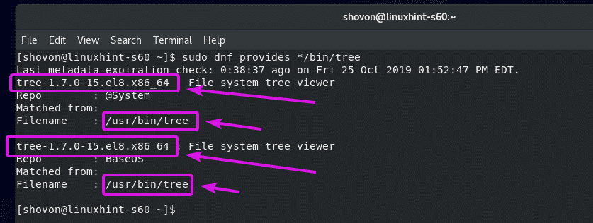 You can find the package name that provides the tree command as follows: