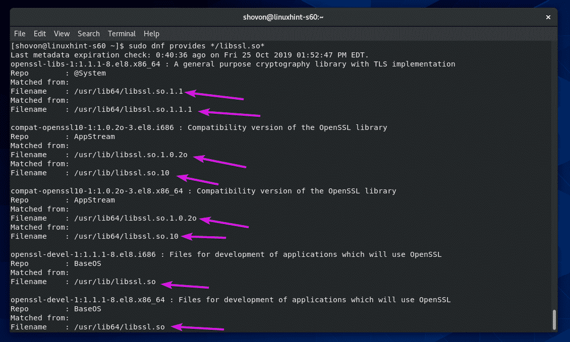 As you can see, the package name and which package provides which version of the library is listed.