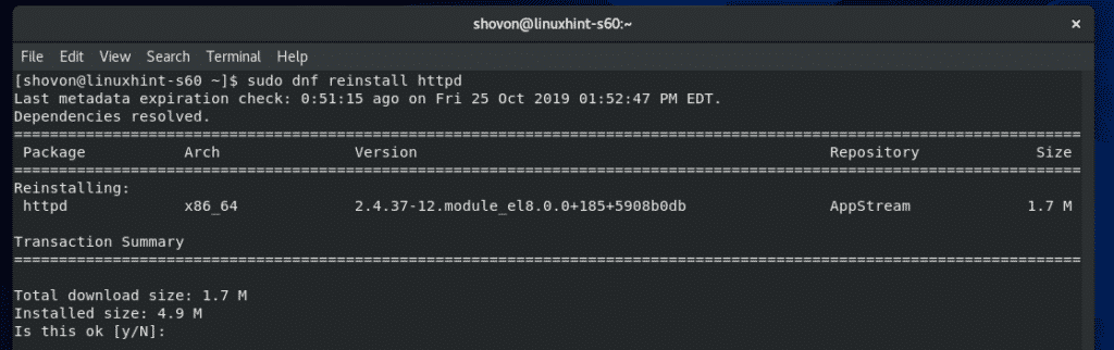 Now, press Y and then press <Enter> to confirm the reinstallation.