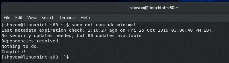 Minimal software update will only install absolutely required security patches.