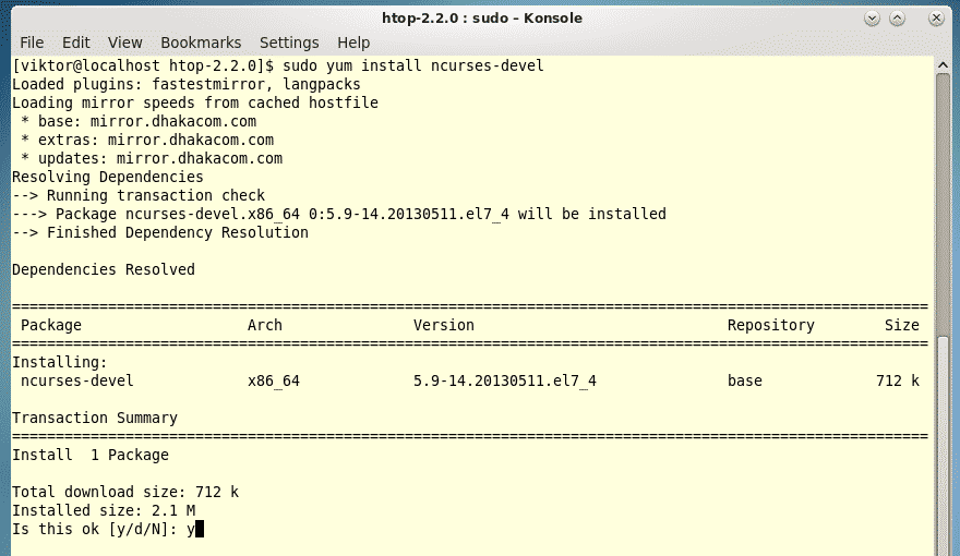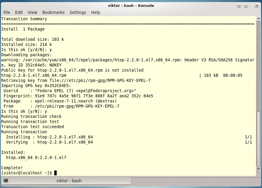 Htop is already available at the Fedora EPEL repository and it’s officially maintained. THat’s why this is the most recommended way of getting htop. Don’t worry; if you wish, you can also download the source and compile it by yourself.