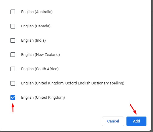 Now, numerous English language options will appear in front of you. Select the checkbox of the one or several which you want and click on the Add button.