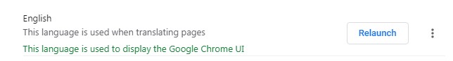 After doing this, you will see a Relaunch button that will appear in the menu. Click it and wait for Chrome to restart, after which you will see your Chrome giving instructions in English.