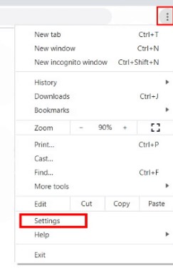 Once Chrome has been opened, open the browser’s drop-down menu by clicking on the three vertical dots present on the top right-hand side. After this, select the Settings option in the menu.