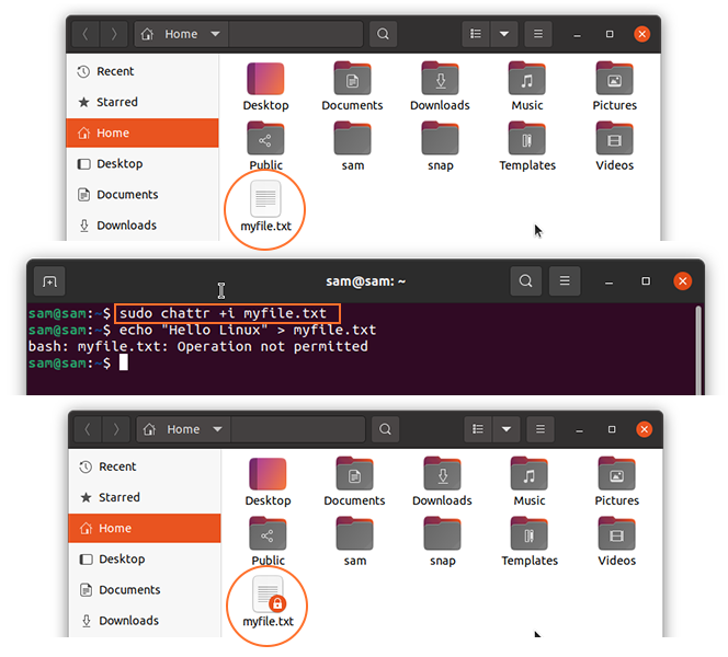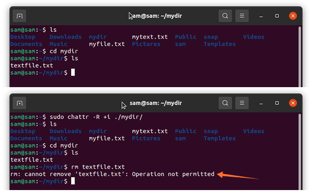 Let’s further understand the “chattr” with examples:
