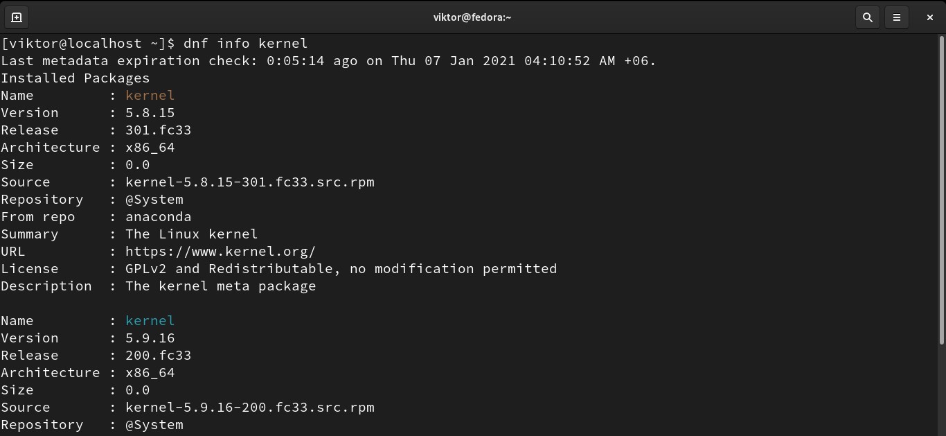 The primary job of the rpm tool is to install and manage RPM packages. Fedora installs kernels as RPM packages. Thanks to this, we can use rpm to list all the installed kernel versions.
