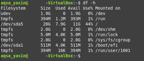 Certain technical terms may not be easily understandable by a new user. For example, in the outputs of both the methods discussed above, you can see a column named “1K-blocks.” This column represents the total number of “1K-blocks” present in each file system. In other words, this is the size of the file system in bytes, which can be difficult to interpret and memorize. Basically, it is a technical way of representing the size of each file system, but this is not so intuitive for a layman. Therefore, the -h flag can be used with the df command to display the disk space in a more human-readable format. To make this happen, follow the steps provided below: