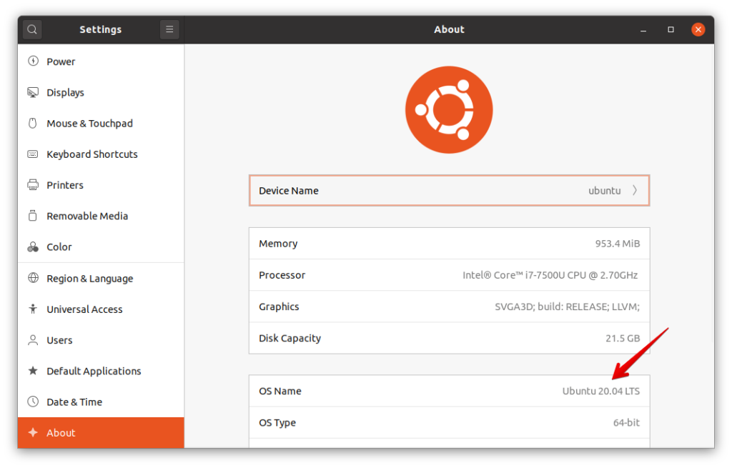In the About window, you will see the version information in the OS Name line, which is 20.04, in our case.