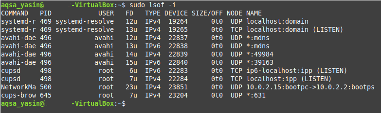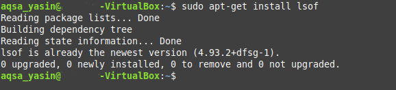 Next, you will have to install the lsof command if you have never used it before. To do so, execute the following command in the terminal: