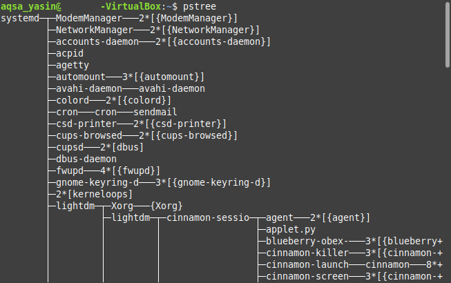 Method # 2: Using the “pstree” Command in Linux Mint 20