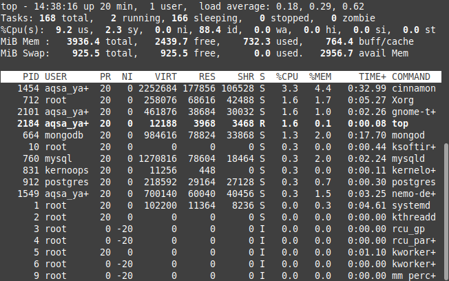 Today’s discussion revolved around the different methods through which you can check the running processes in Linux Mint 20. These methods can be used depending upon the kind of output you want to retrieve. The first method simply lists all of the running processes at once, whereas the second method presents them in a nice tree-like structure that can be read and processed more easily. The third method follows a table-like structure to display the running processes along with some additional information about them, whereas the fourth one more or less displays the very same information but with a relatively nicer interface. After following this guide, I hope you are now in a position to conveniently check all the running processes in the Linux Mint 20 operating system.