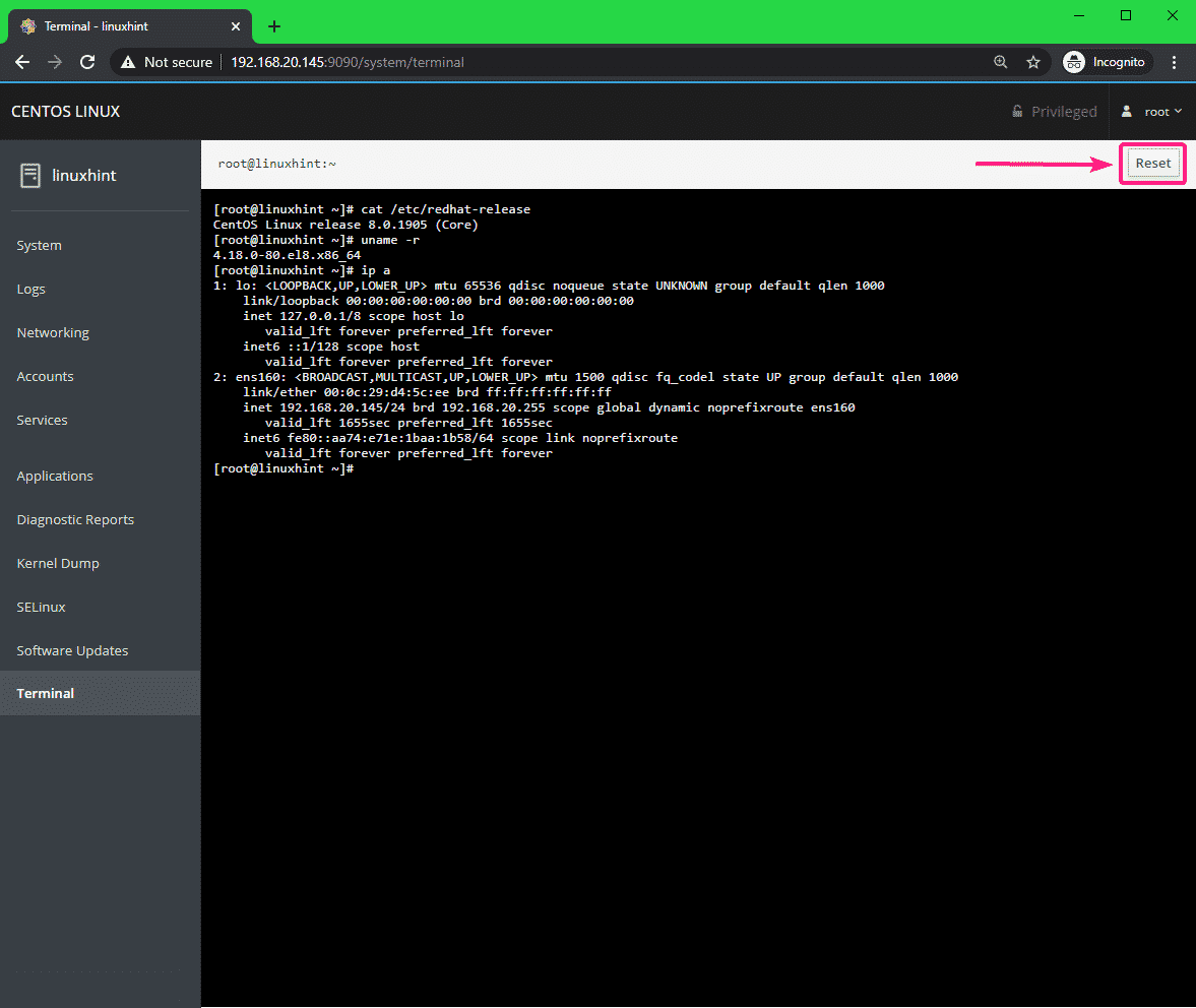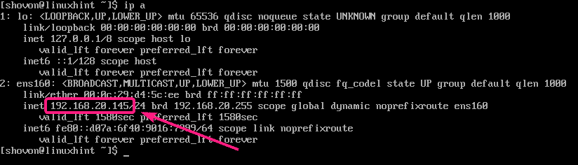 As you can see, the IP address of my CentOS 8 server is 192.168.20.145. It will be different for you. So, make sure to change it with yours from now on.