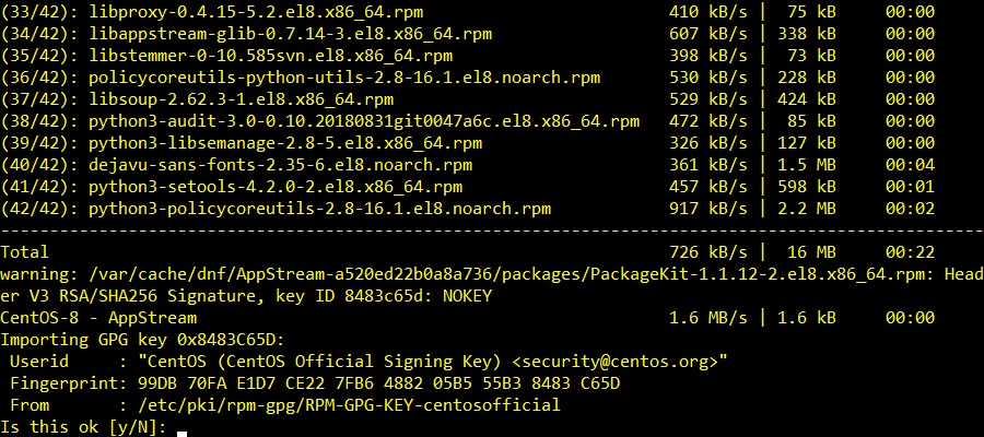 You may be asked to confirm the GPG key. Press Y and then press <Enter> to confirm it.