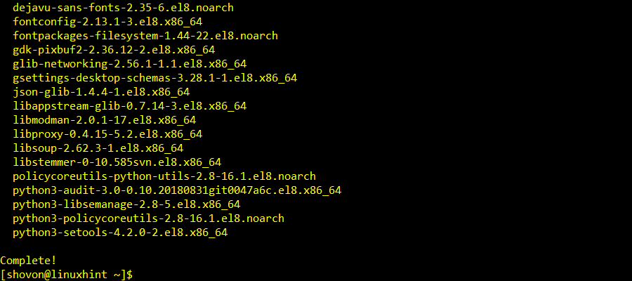 The DNF package manager should start downloading all the required packages.