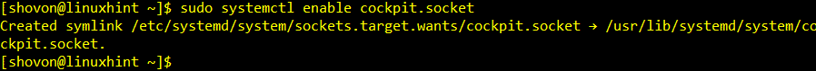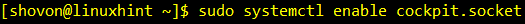 Now, add Cockpit web service socket to the system startup of CentOS 8 with the following command: