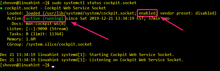 Now, check the status of the Cockpit web service socket with the following command: