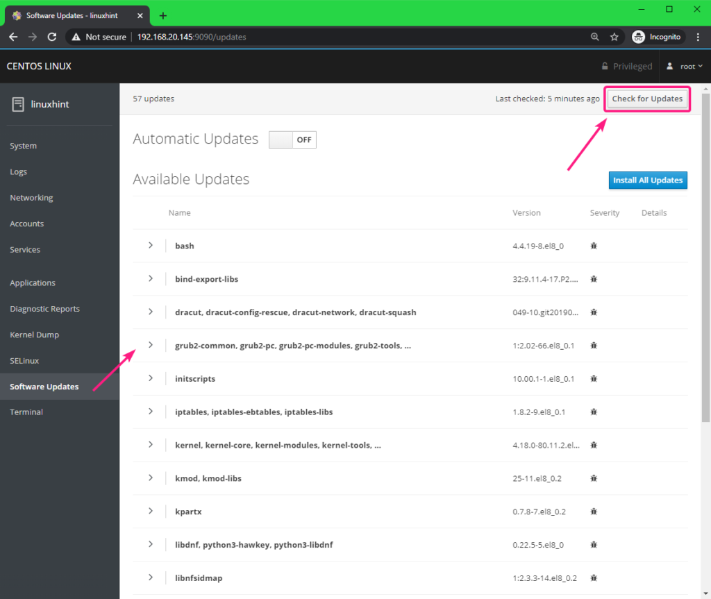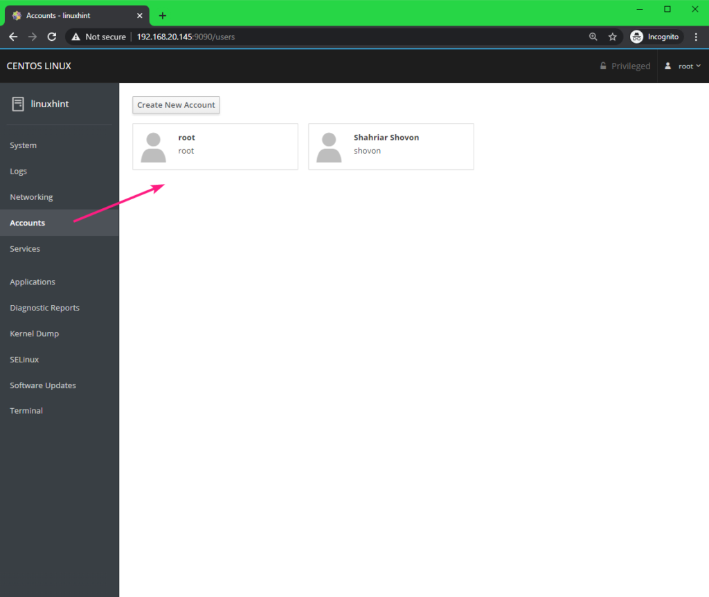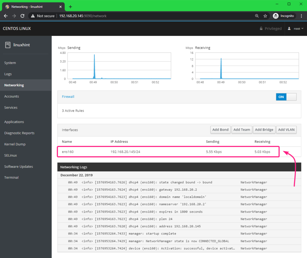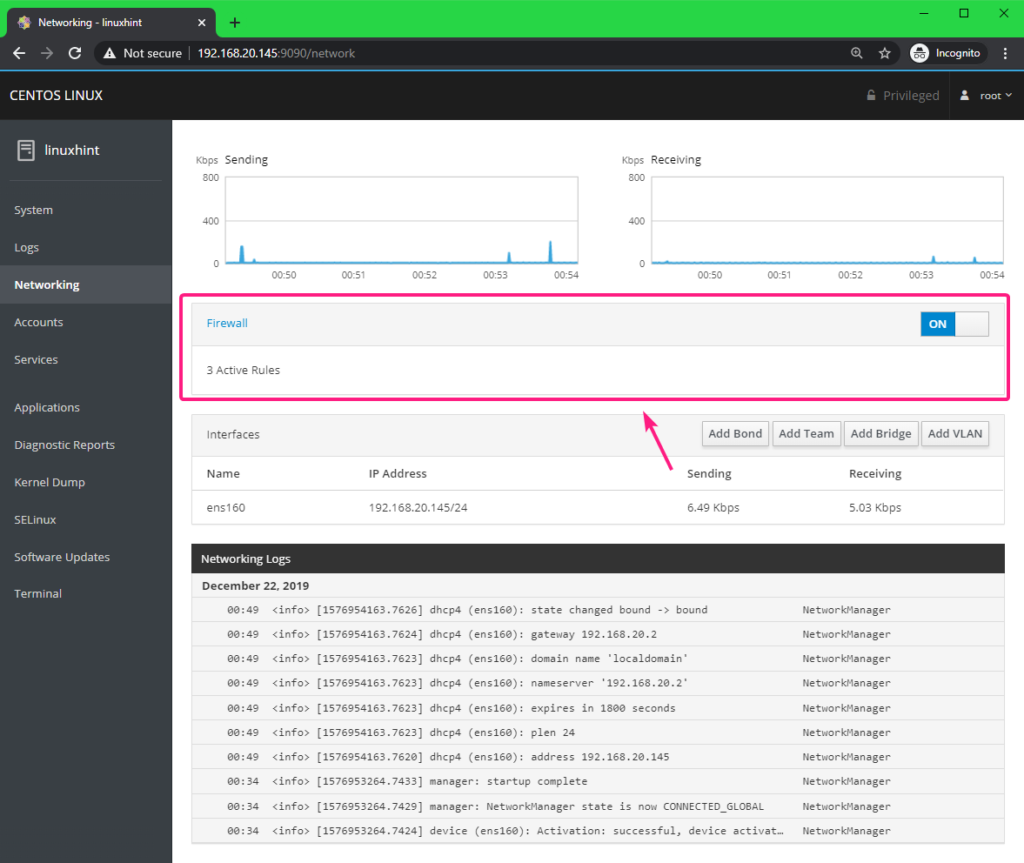 Managing and Monitoring CentOS 8 Server using Cockpit Web Console: