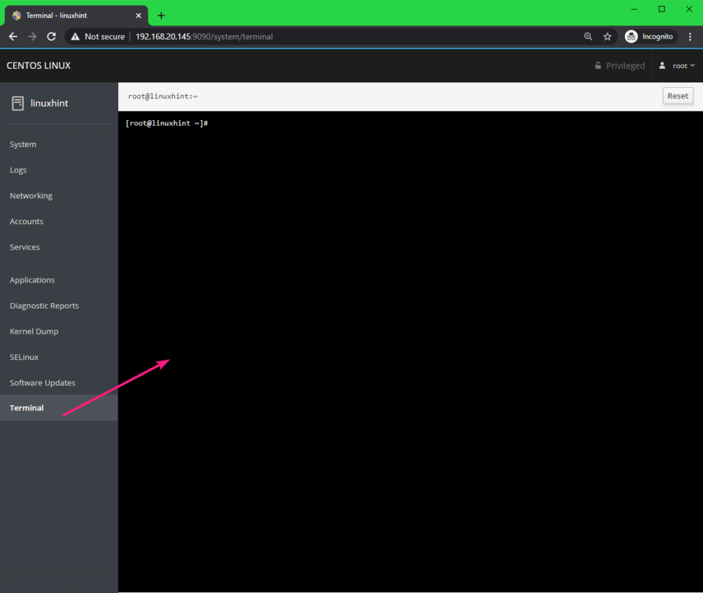 You should be logged in to Cockpit web console.