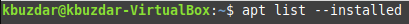 First, you should know which package you want to remove. For that, you can try listing down all the installed packages on your Linux Mint 20 system. Then from this list, you can easily figure out which package you want to remove completely. For listing down all the installed packages in Linux Mint 20, you have to execute the command shown below in the terminal:
