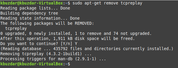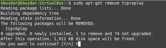 Here, you can replace PackageName with the name of the respective package that you want to remove. In our case, the package that we wanted to remove was “tcpreplay”.