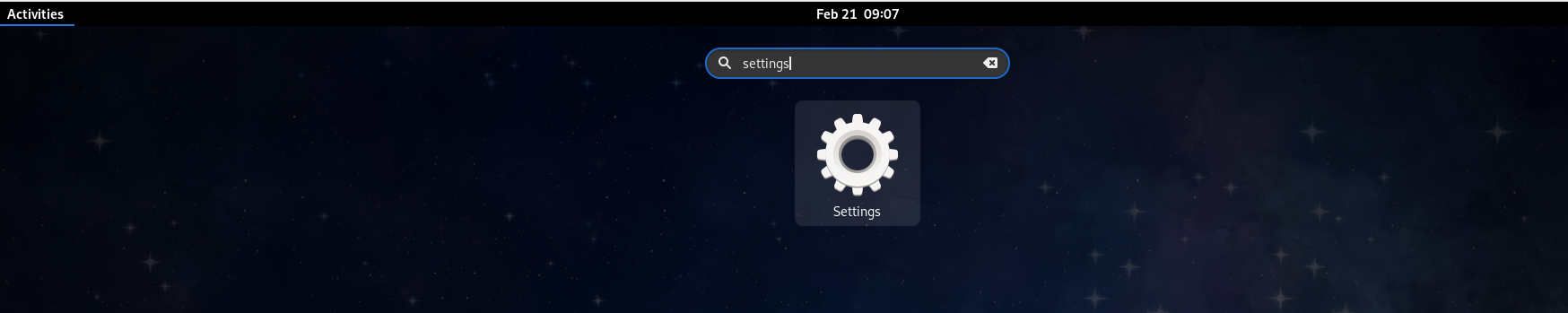 Step 1. On the Gnome desktop, go to the activities tab and search for Settings and launch it: