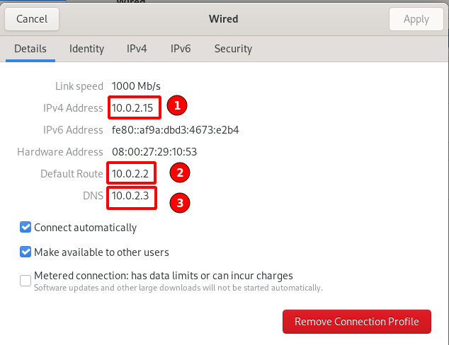 Please note that our current IP is 10.0.2.15; we need to set it to 10.0.2.27.