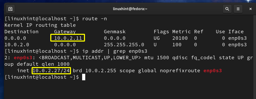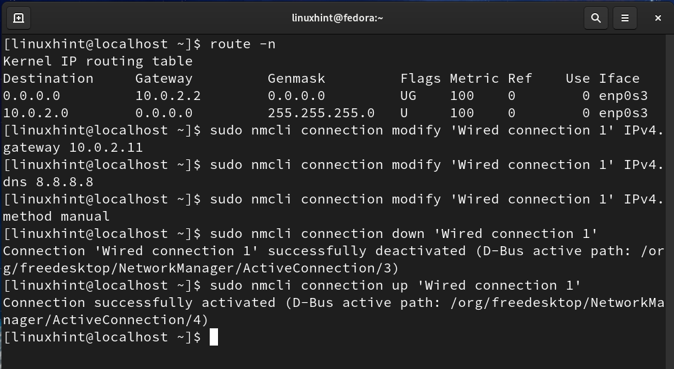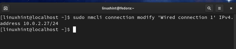 Method 1. Using nmcli command-line utility for setting a static IP address on Fedora 33