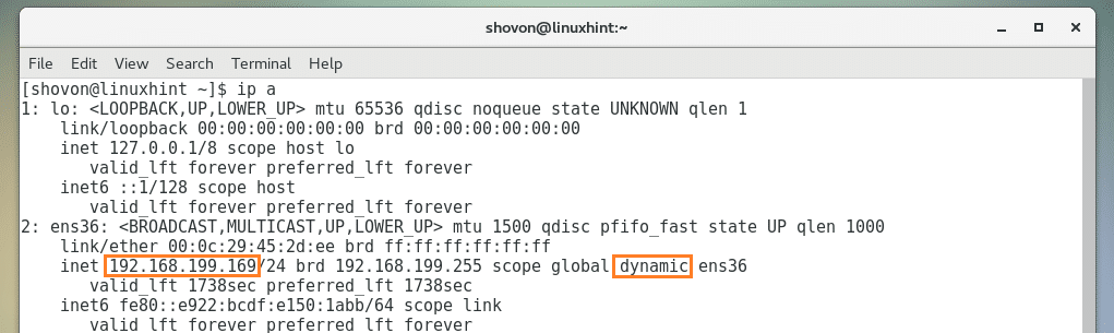As you can see from the marked section of the screenshot below, my IP address is 192.168.199.169 and it’s dynamic.