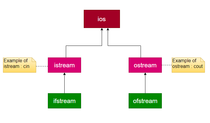 Here is the stream class hierarchy of the C++ programming language:
