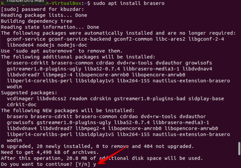 The Brasero utility does not come preinstalled on Ubuntu 20.04, so you will need to install this utility manually. Open the ‘Terminal’ window by pressing the ‘Ctrl+Alt+T’ shortcut keys together. Install the Brasero utility using the following command: