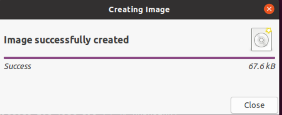 Once the above process has been completed, you will be notified with an ‘image successfully created’ message, as follows:
