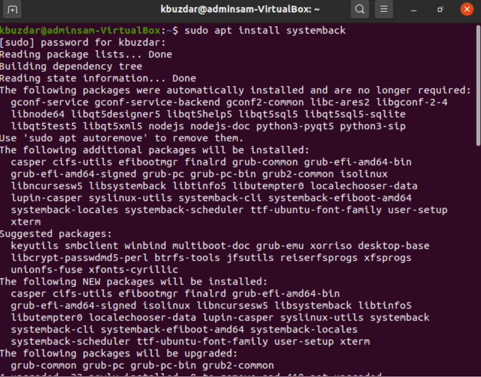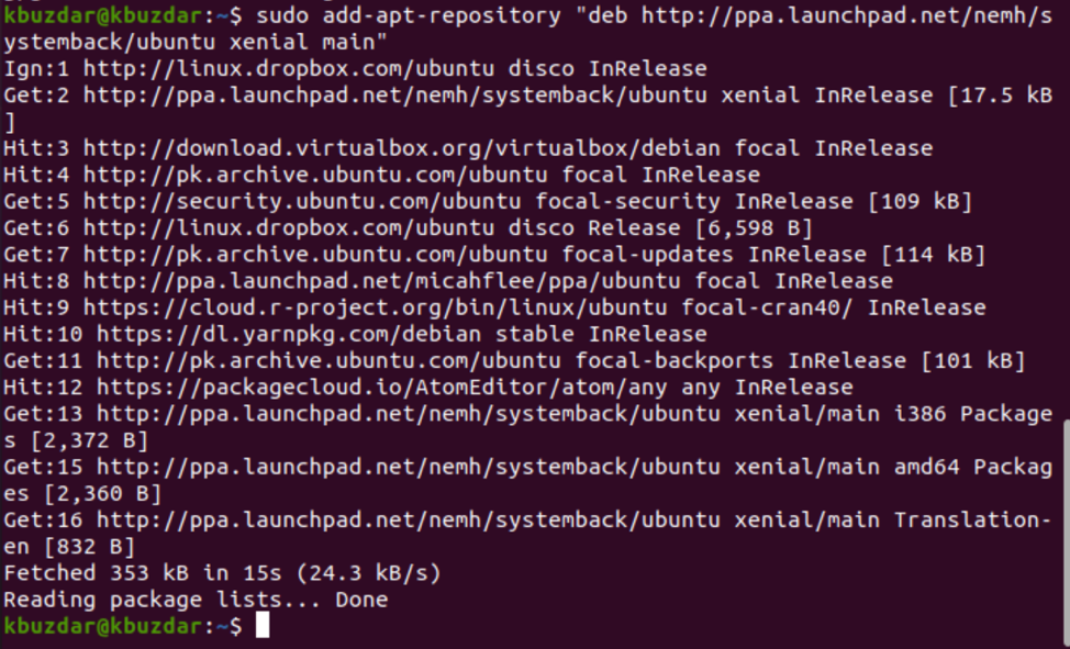 Once the above task has been completed, update the package list and install the Systemback utility, as follows: