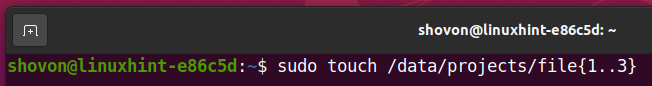 To create some dummy files in the /data/projects subvolume, run the following command:
