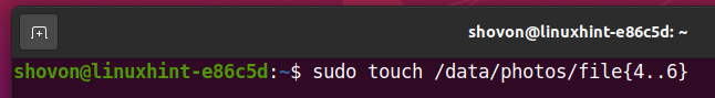 To create some dummy files in the /data/photos subvolume, run the following command: