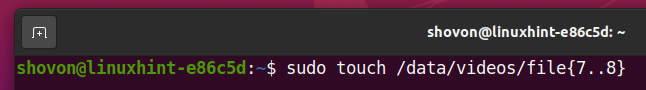 To create some dummy files in the /data/videos subvolume, run the following command:
