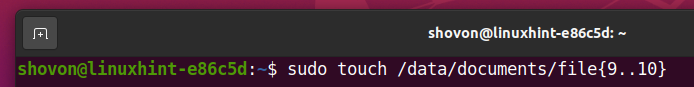 To create some dummy files in the /data/documents subvolume, run the following command:
