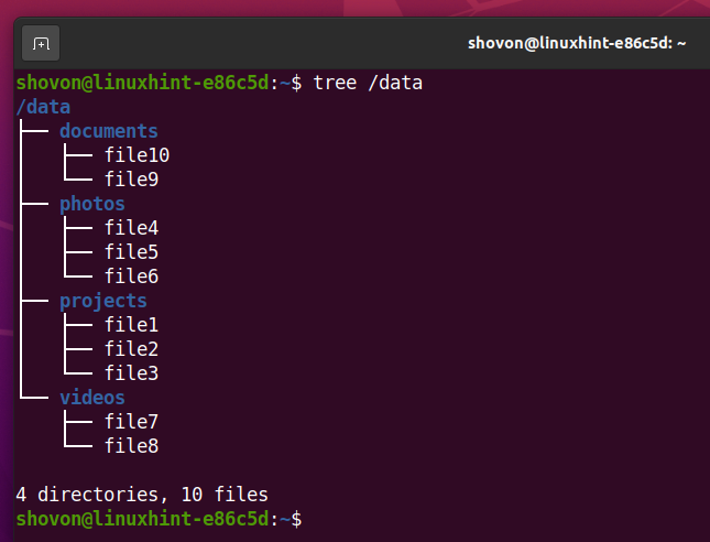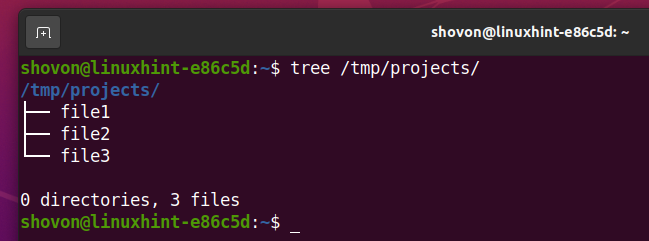 All the files you have created in the projects subvolume are also available in the /tmp/projects directory as you can see in the screenshot below.