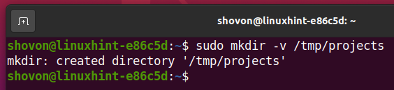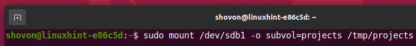 I will mount the Btrfs subvolume projects in the /tmp/projects directory to show you how to mount a Btrfs subvolume.