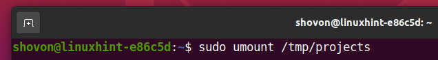 Before that, umount the projects subvolume from the /tmp/projects directory as follows: