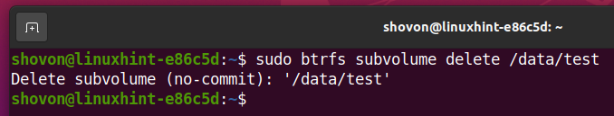 In this section, I am going to show you how to remove a Btrfs subvolume.