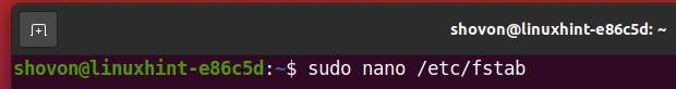 Now, edit the /etc/fstab file with the nano text editor as follows: