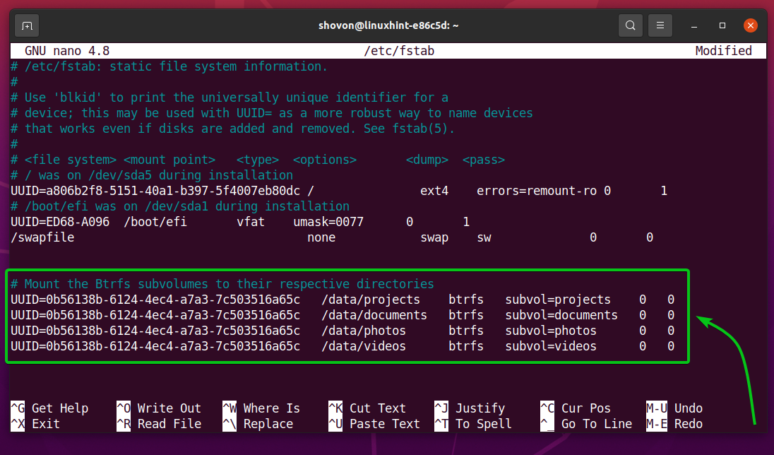 Automatically Mount Brtfs Subvolumes at Boot Time