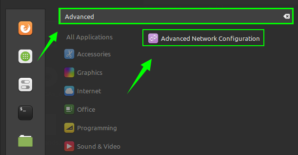 1. Open the Application Menu and search for ‘Advanced Network Configuration’.