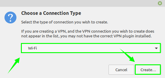 3. Choose WiFi from the given list of Connection Types and click ‘Create’.