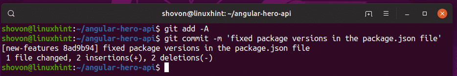 $ git commit -m 'fixed package versions in the package.json file'