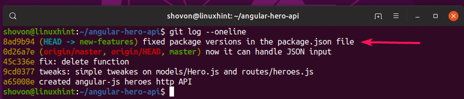 As you can see, the new commit is added to the new-feature branch.