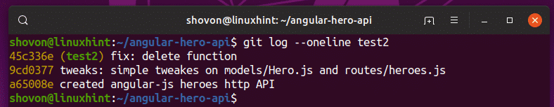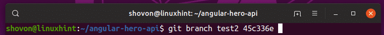 Now, let’s say, you want to use to the commit 45c336e as the HEAD (last commit) of the new branch test2. To do that, run the following command.