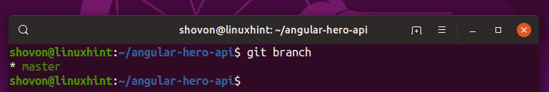 As you can see, I have only one branch master on my Git repository. As you create more branches, it will show up here. The active branch has an asterisk (*) in front of it. It will also have different color than the other branches. As you can see, the master branch has an asterisk (*) in front of it, so it is the currently active branch.